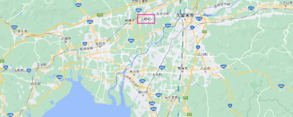 佐賀県上峰町の場所はこちらになります。久留米市と佐賀市の中間?地点にありました。