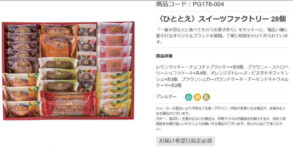 迷いましたが、数量が多くクッキーやフィナンシェなど種類も豊富だったのでこちらにしました。