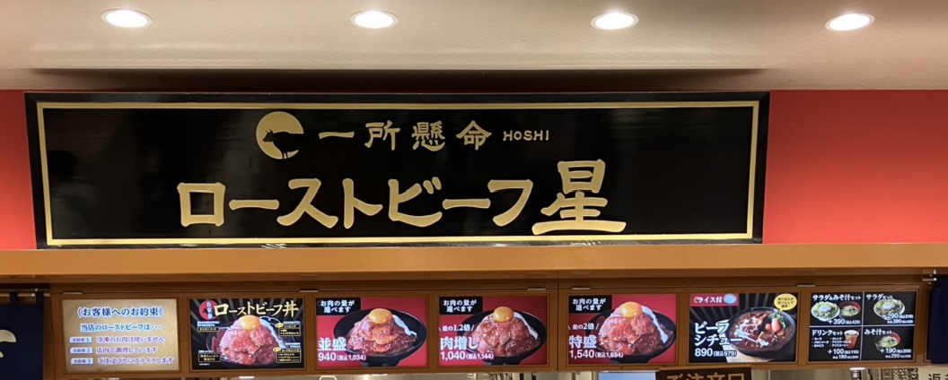 先日、フードコート内にあったローストビーフ専門店の「ローストビーフ星」に行ってきました。