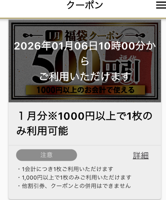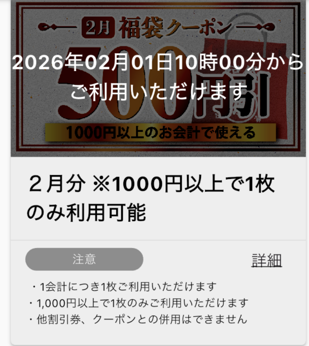 クーポンは26年1月5日以降に公式アプリ上に付与されるようです。