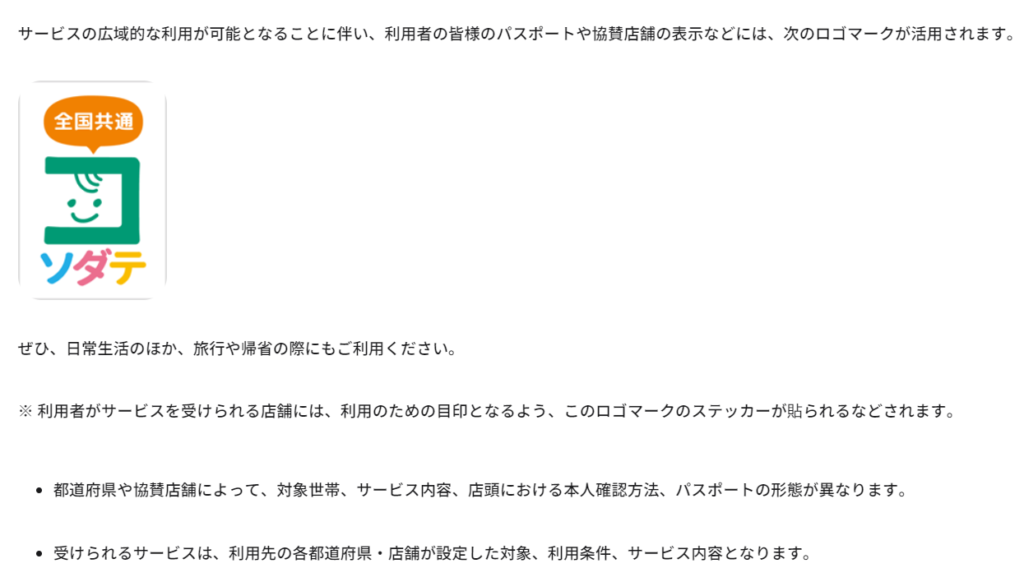 異なる県のパスポートでも、「ソダテの協賛店」であれば全国で使えます!全国共通はありがたいですよね。※協賛店によってサービス内容は異なります。