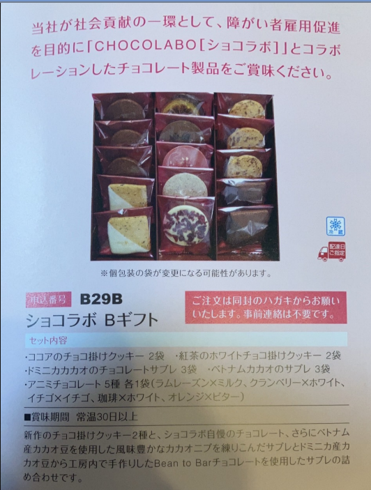 内容はこのようになっていました。ショコラボは、毎回内容が異なってるので楽しみです。