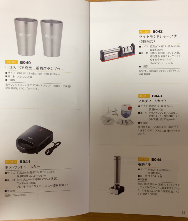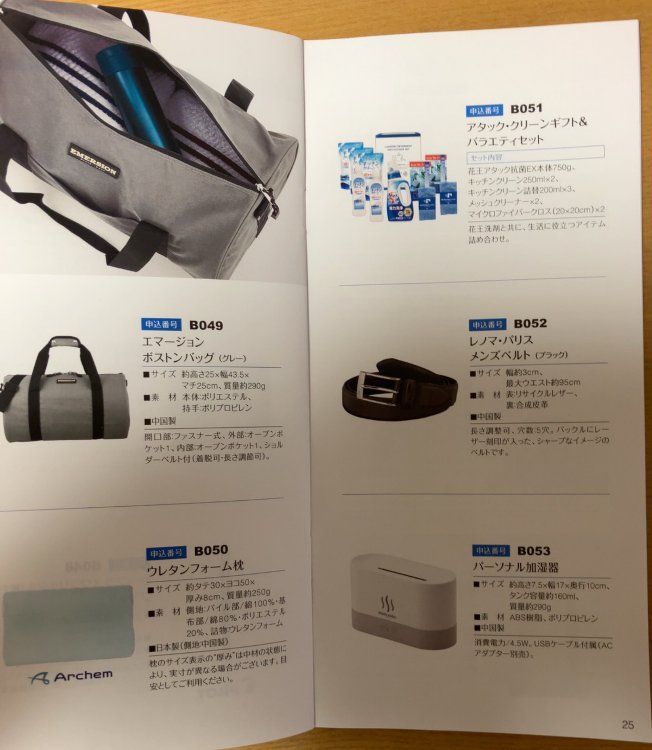 3,000円分(3年以上)のカタログ内容です