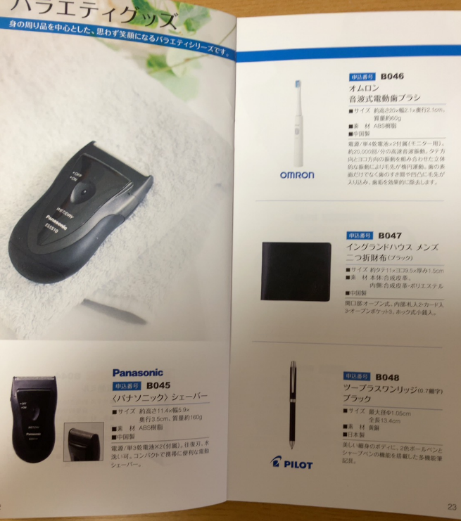 実際のカタログの内容です。