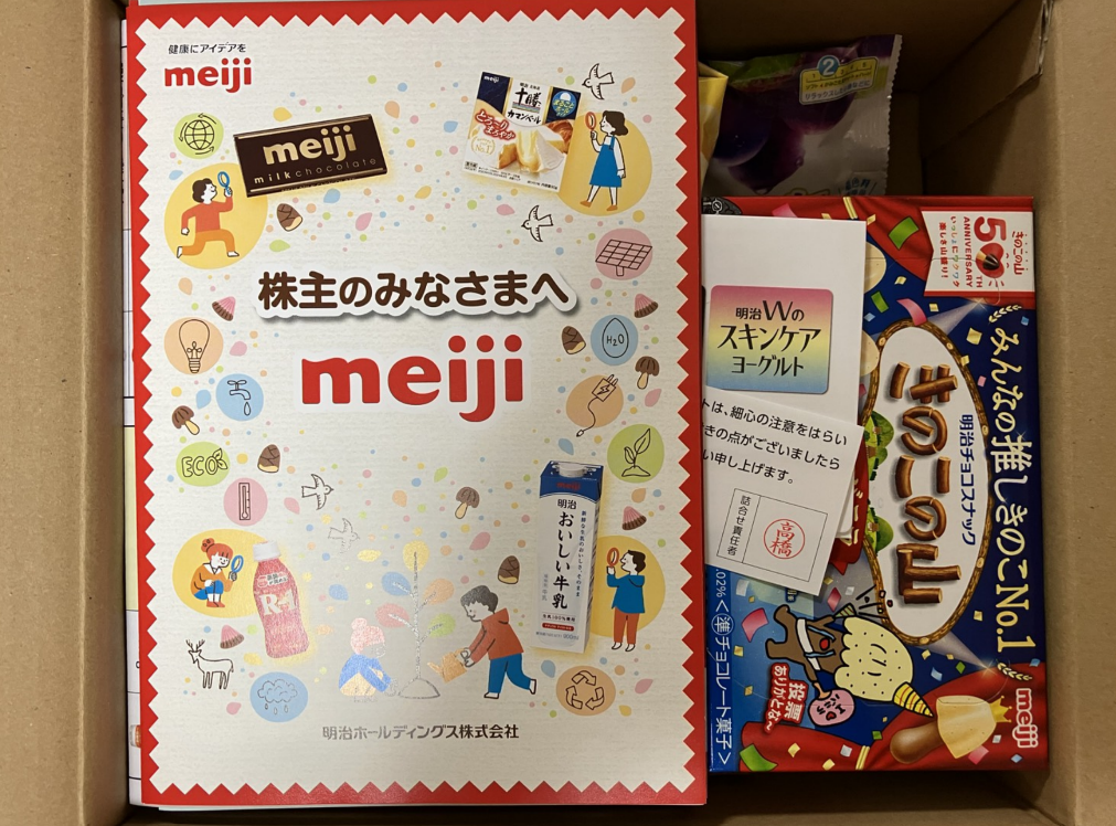 今回、明治ホールディングスから株主優待の製品詰め合わせが届きました。今回、初です。