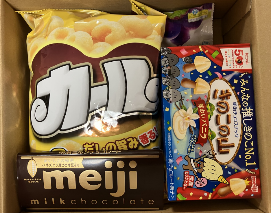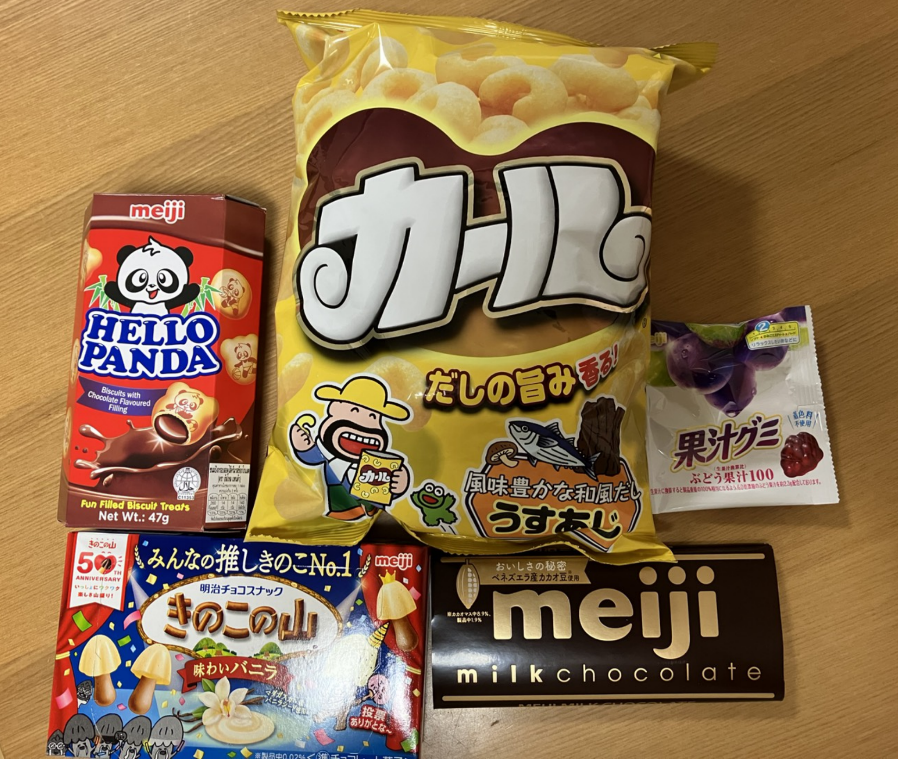 お菓子にあまり詳しく私も知っている果汁グミやmeijimilkchocollateがありました。