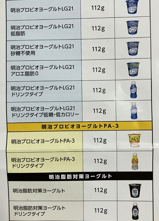PA-3(黄)や脂肪対策ヨーグルト(黒)は恥ずかしながら初めて知りました。