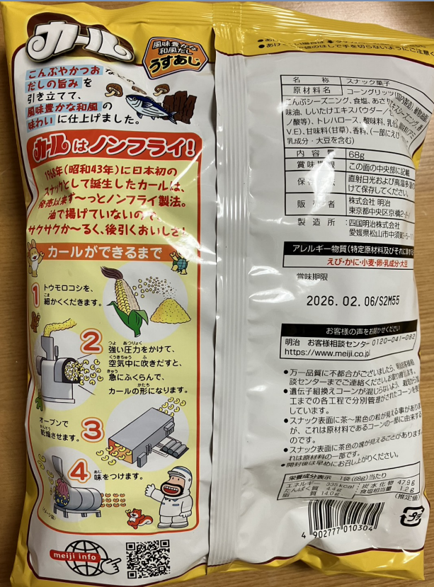 カールってノンフライなんですね。カールの工程がわかりやすく記載されていて親近感わきますね。