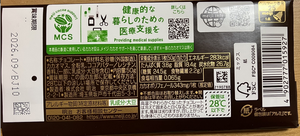 4、明治のミルクチョコレート