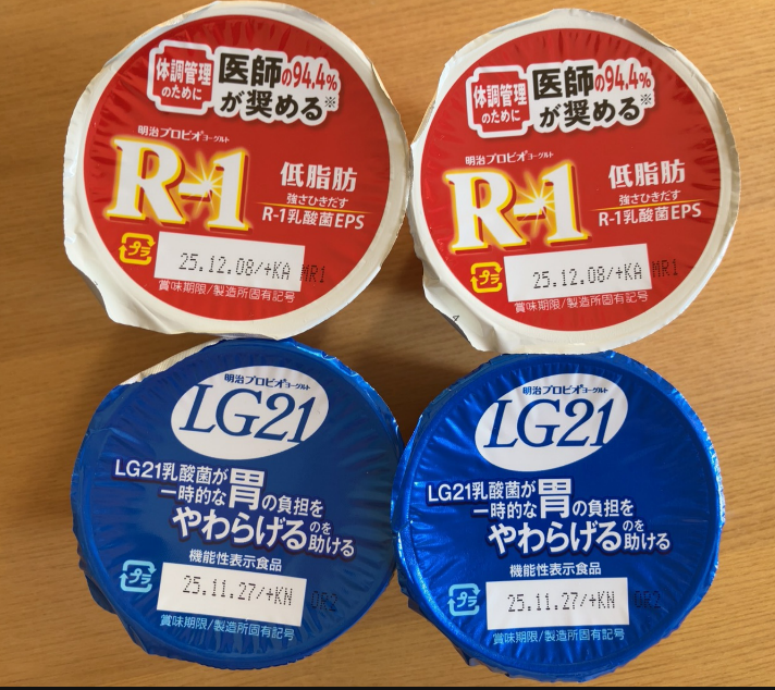 R-1低脂肪とLG21の各2個ずつにしました。食べ比べができます(#^.^#)