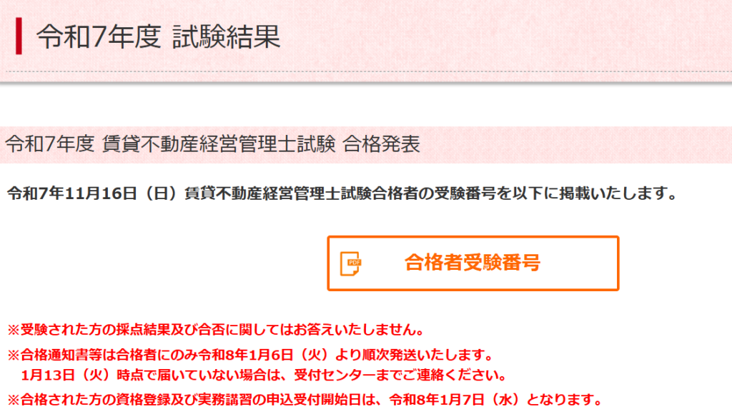 令和7年度賃貸不動産経営管理士試験の試験結果ページです。合格者の受験番号及び統計データを掲載いたします。
